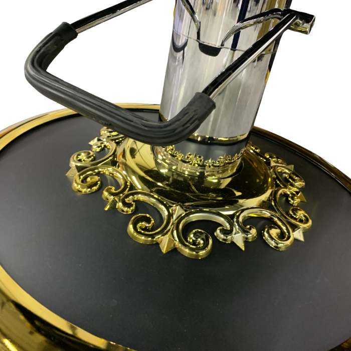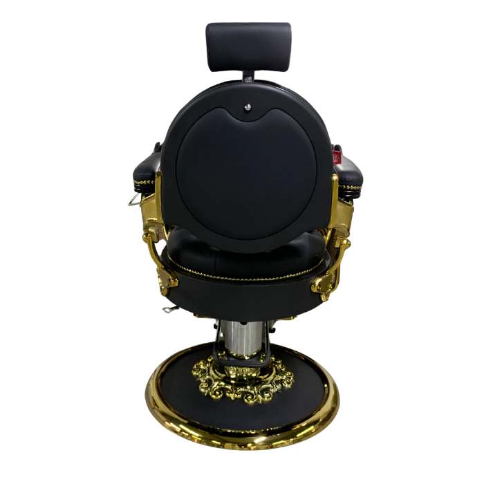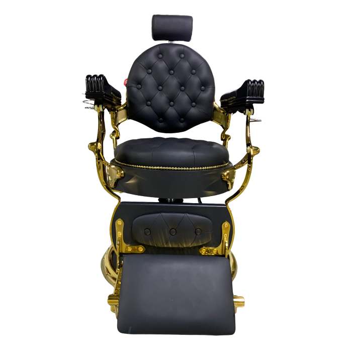La silla de barbero Paragon Pro combina elegancia y funcionalidad con un diseño clásico de lujo en acabado dorado y tapizado negro capitonado. Ofrece máxima comodidad gracias a su respaldo reclinable, reposapiés ajustable y base hidráulica resistente. Ideal para barberías que buscan estilo, durabilidad y un toque sofisticado en su mobiliario profesional.